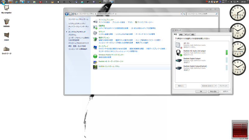 まず初めに、「コントロールパネル」から「ハードウェアとサウンド」-「サウンド」を開きます。
